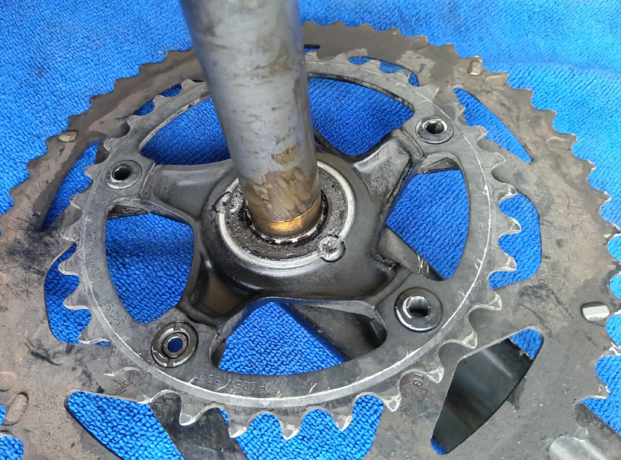 想像ですが、前所有者がクランクを FSA GOSSAMER BBlight に交換した際に